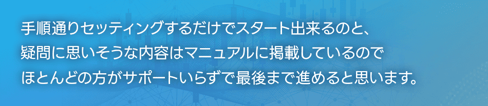 運用する口座の開設やソフトのセッティング、運用の監視など