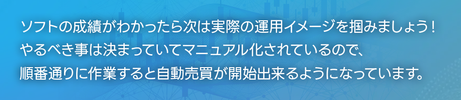 運用する口座の開設やソフトのセッティング、運用の監視など